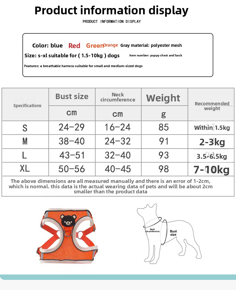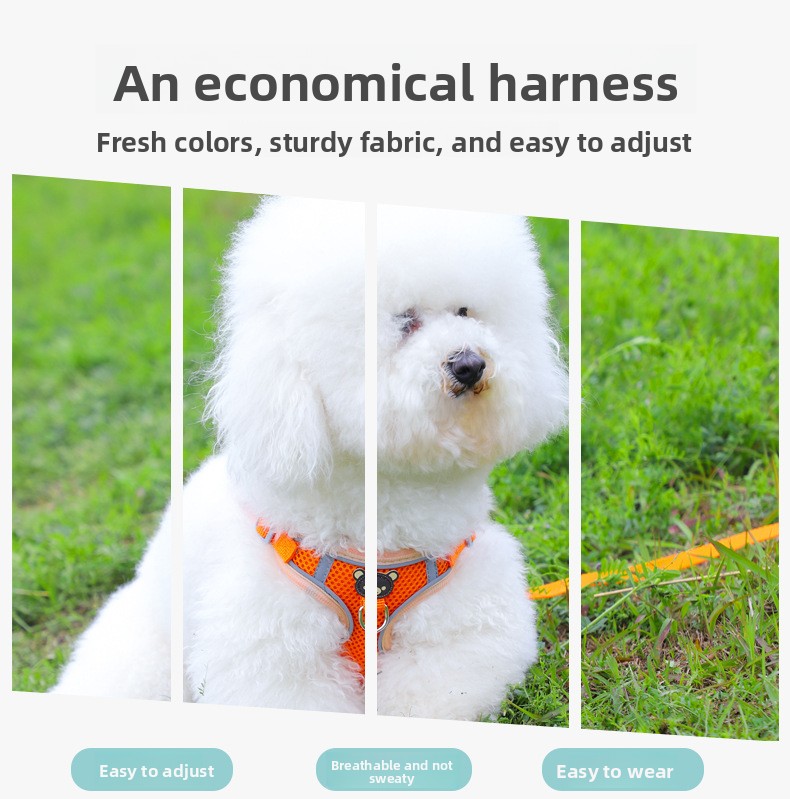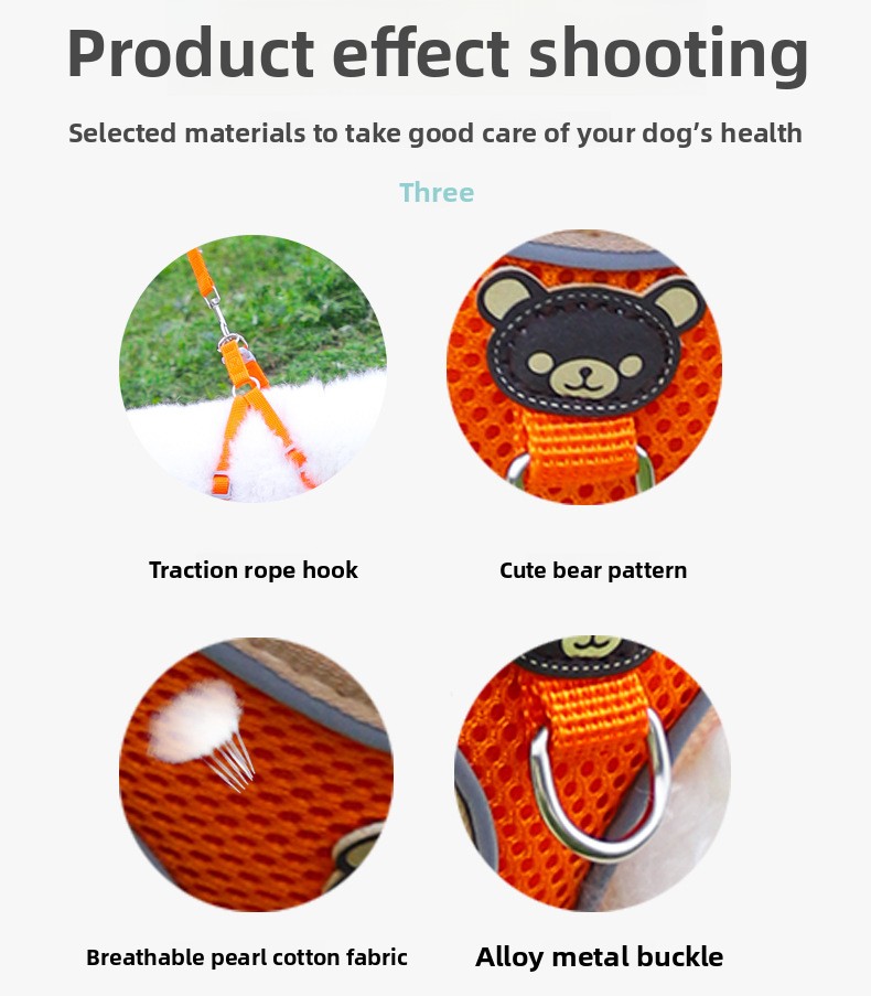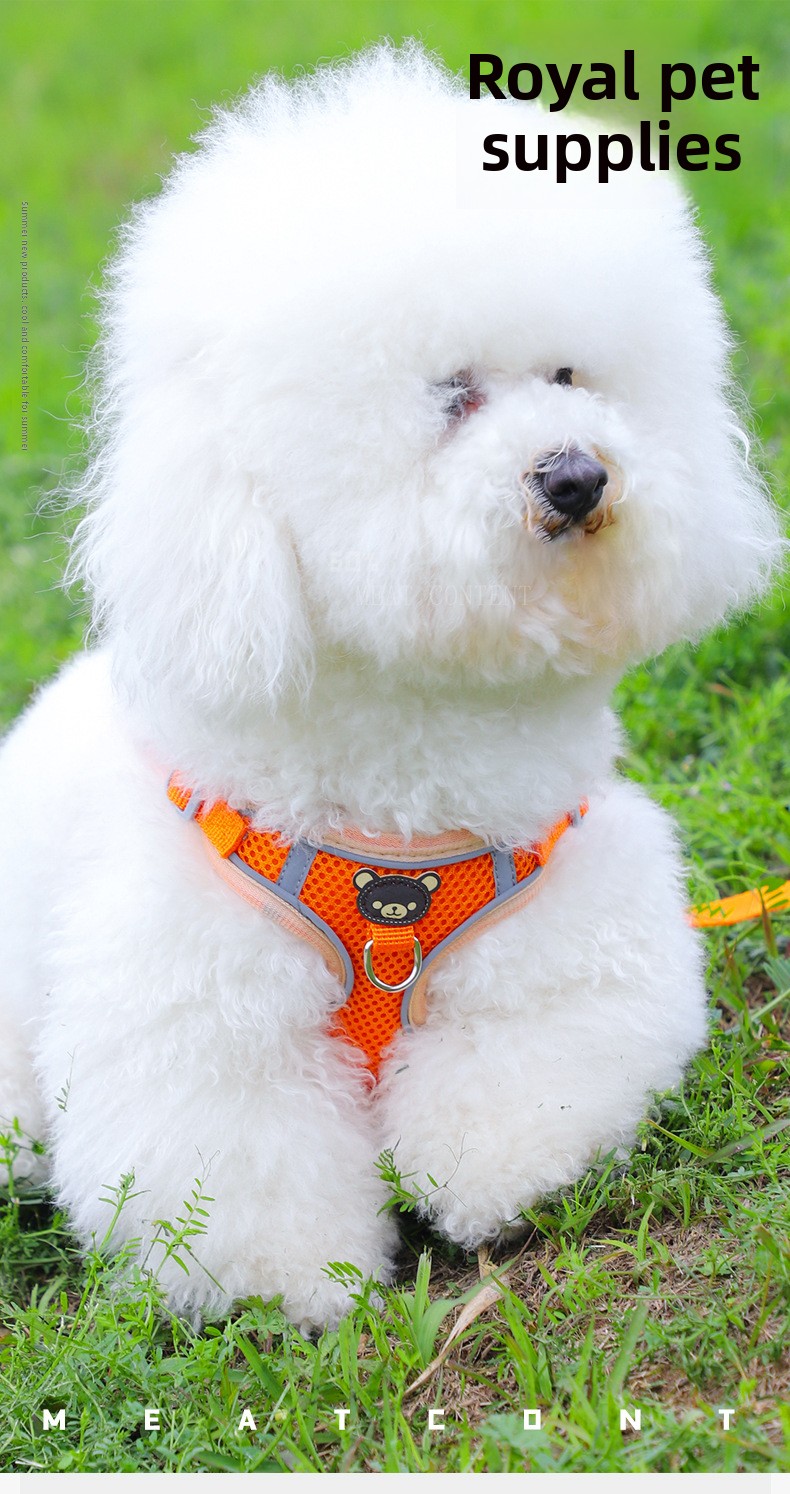 Comfortable Design: Soft fabric harness with bear pattern for pet comfort and style.
